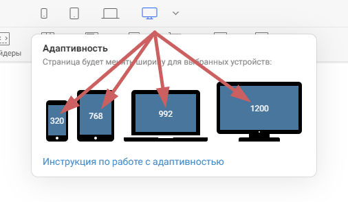 На иконках каждого устройства будет отображаться минимальная ширина экрана, начиная с которой, страница адаптируется под это устройство.
