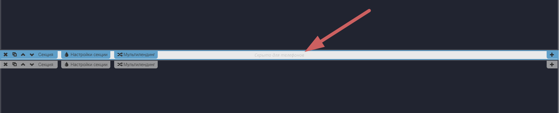 2. Зайдем в настройки секции, которую хотим показывать на всех устройствах кроме мобильных, и скроем ее от мобильных: