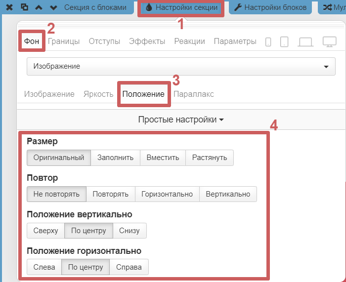 1. Создадим копию секции, у которой хотим настроить разный фон для некоторых устройств. Если возникли трудности, скопировать секцию можно по нашей инструкции: