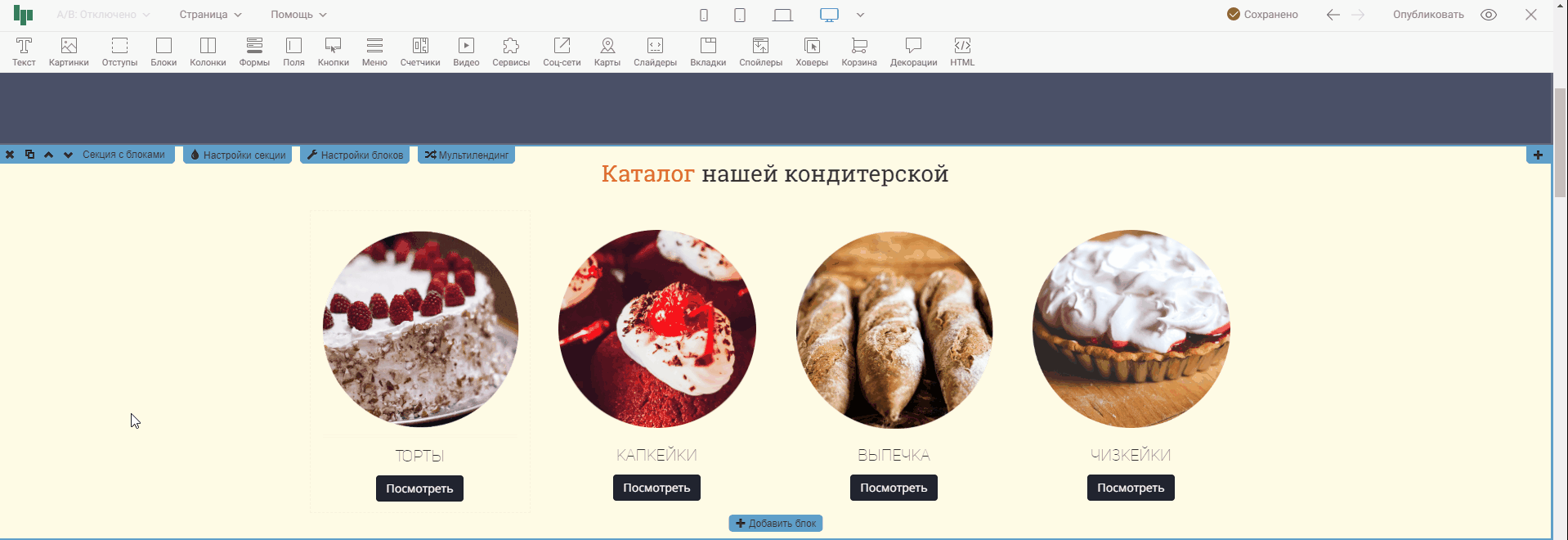 Готово! Секция с меню будет зафиксирована при прокрутке страницы, и посетителю будет удобно его использовать. Примеры зафиксированных секций можно посмотреть в нашей отдельной инструкции: