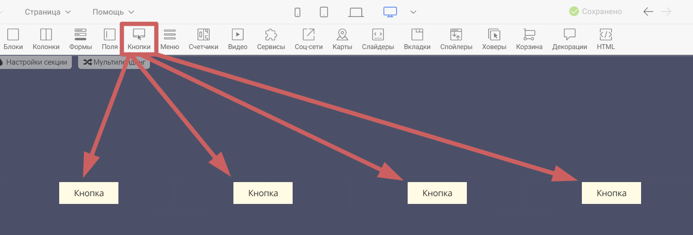 - Второй якорь. В настройках секции: blok1 В настройках кнопки: #blok1