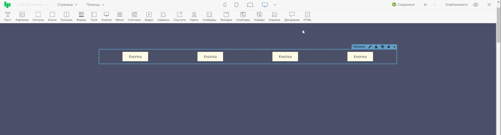 Чтобы перемещать колонки с кнопками влево или вправо - потяните за край колонки, который находится между кнопок, в нужную сторону. Разберем на примере: