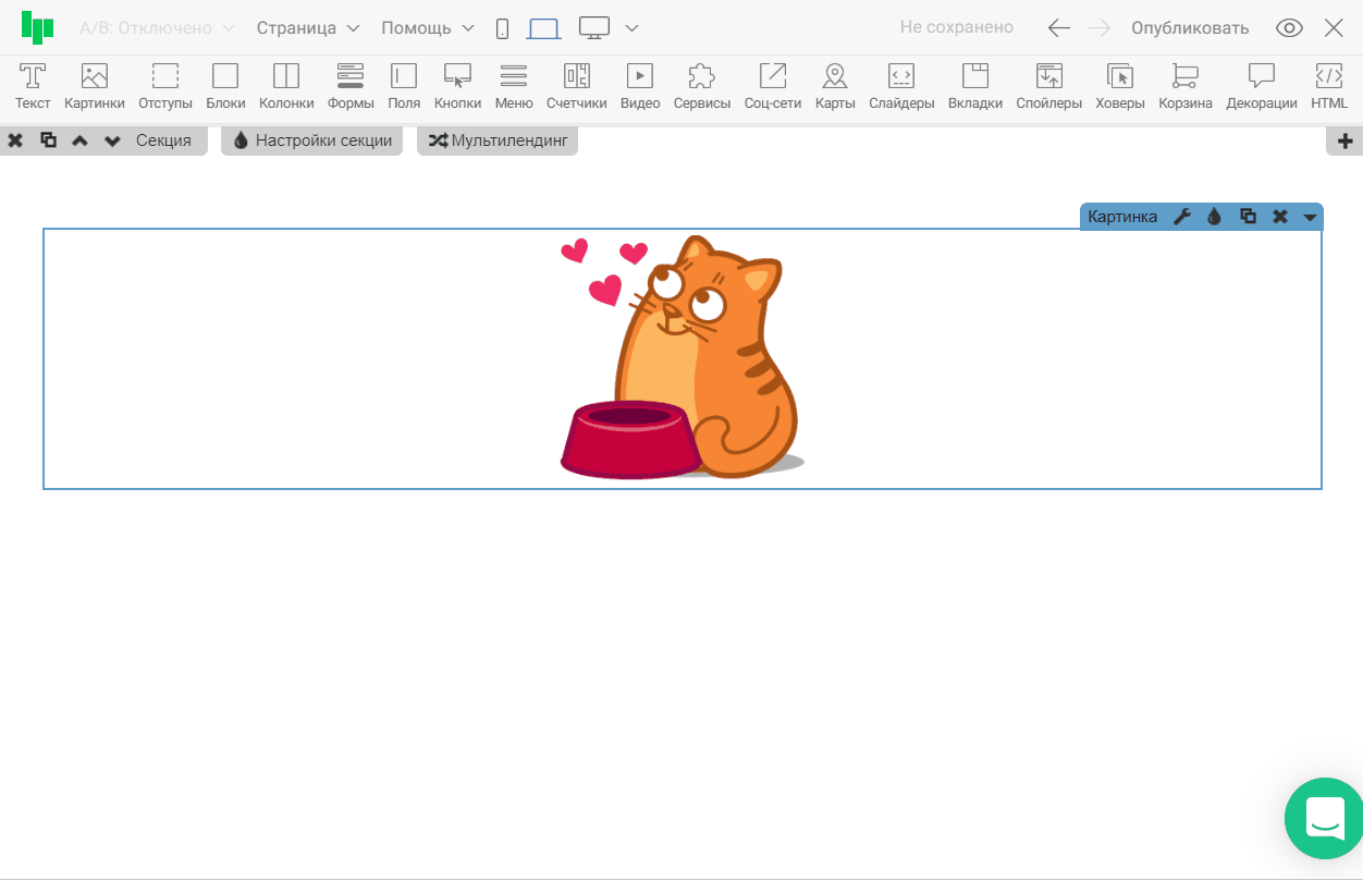 Шаг 1. Добавим виджет на секцию из панели редактора и настроим его вид.