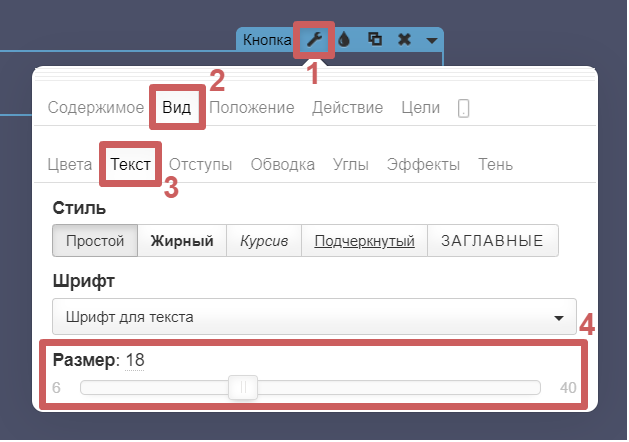 Далее переходим в раздел «Вид » во вкладку «Текст » и настроим нужный нам размер текста.