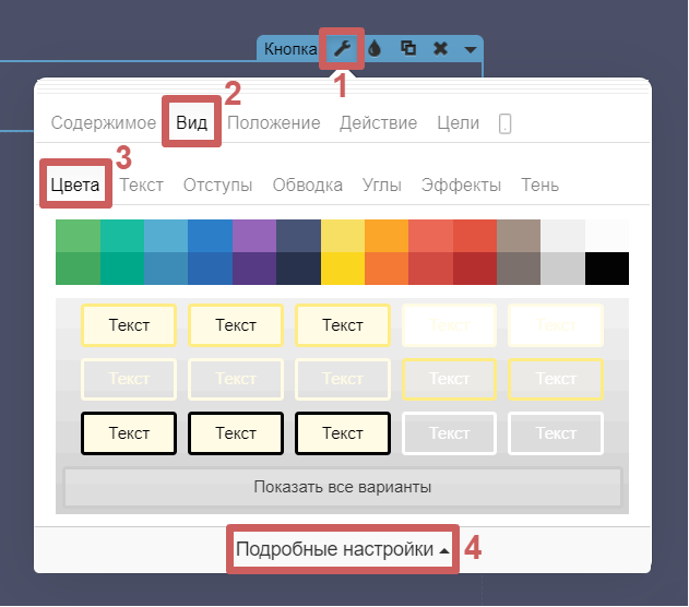 Шаг 3. Перейдем в раздел «Цвета » во вкладку «Подробные настройки » и зададим нужный цвет тексту: