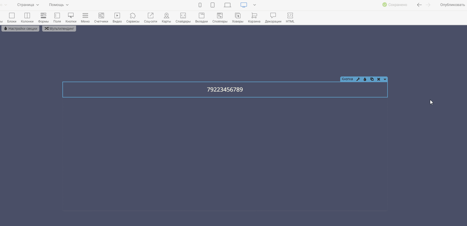 Шаг 3. Публикуем страницу и всё готово! Чтобы протестировать кликабельность телефона, зайдите в предпросмотр или на опубликованную версию страницы.