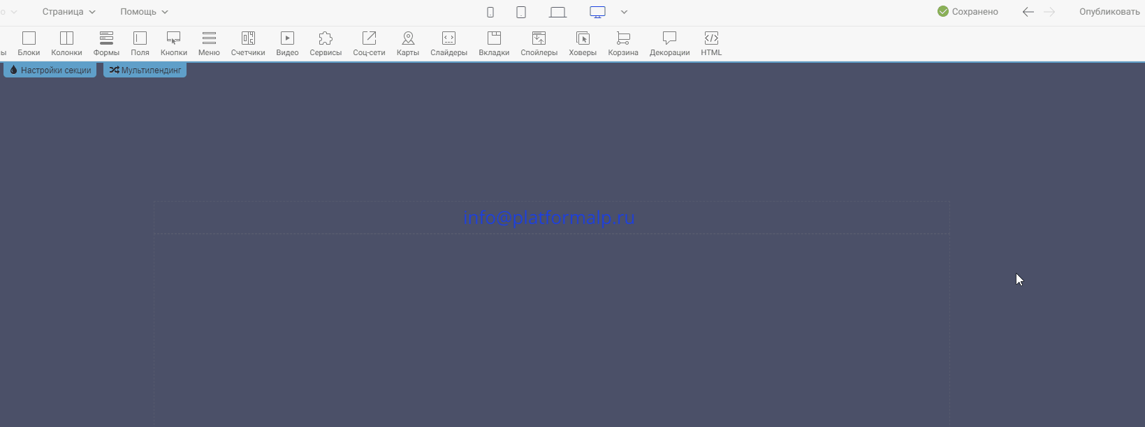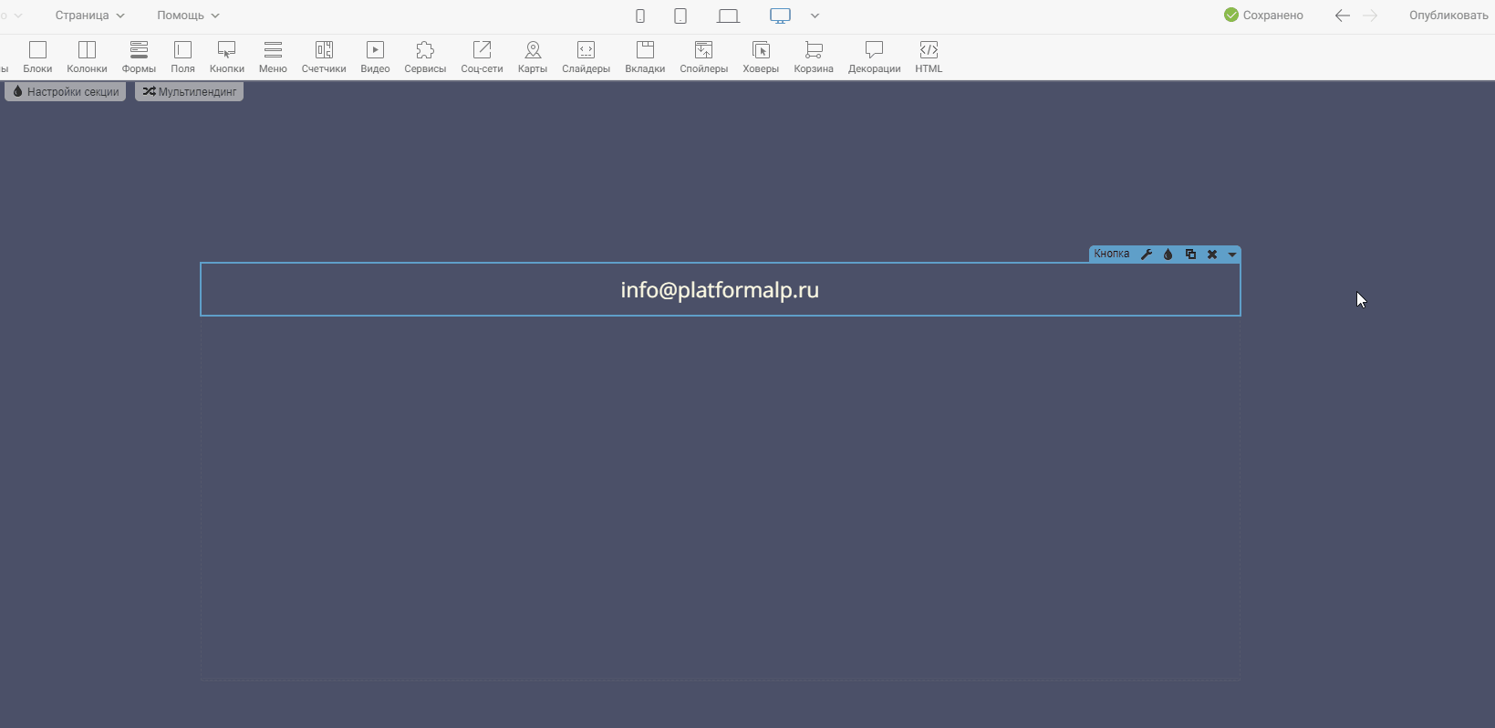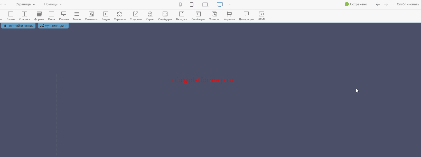 Шаг 5. Публикуем страницу и всё готово! Чтобы протестировать кликабельность электронного адреса, зайдите в предпросмотр или на опубликованную версию страницы.