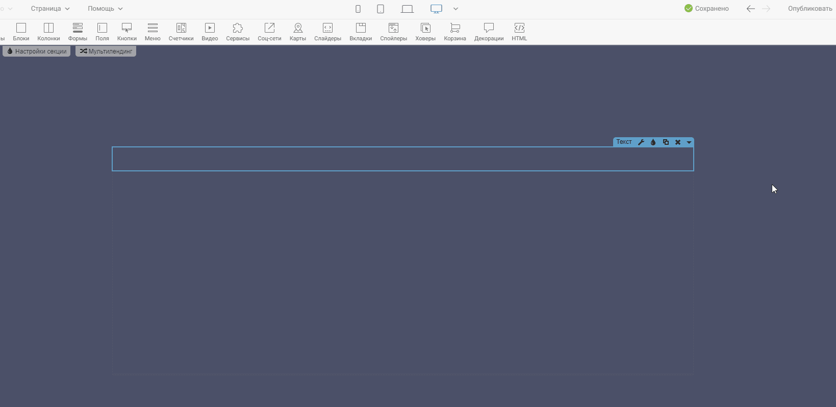 Шаг 1. Добавим виджет «Текст » в секцию
