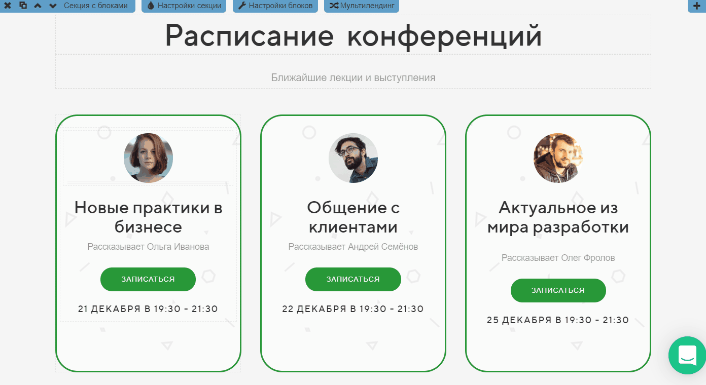 Предположим, у нас есть информация о расписании конференций, их тем и спикерах. Разместим ее в редакторе за несколько шагов - переходим к следующему разделу 🧐