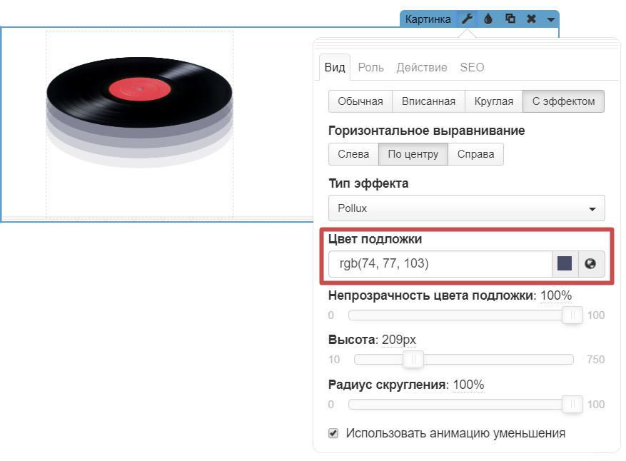 3. Как настроить картинку с эффектом?