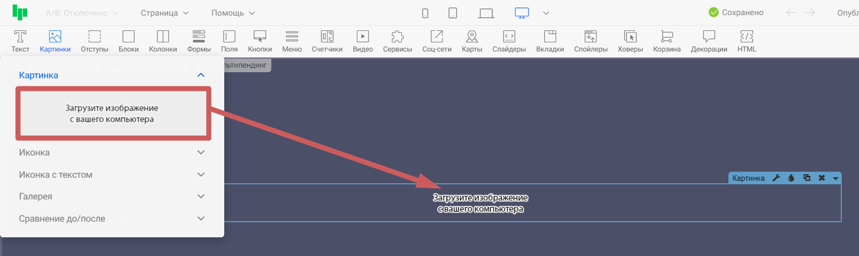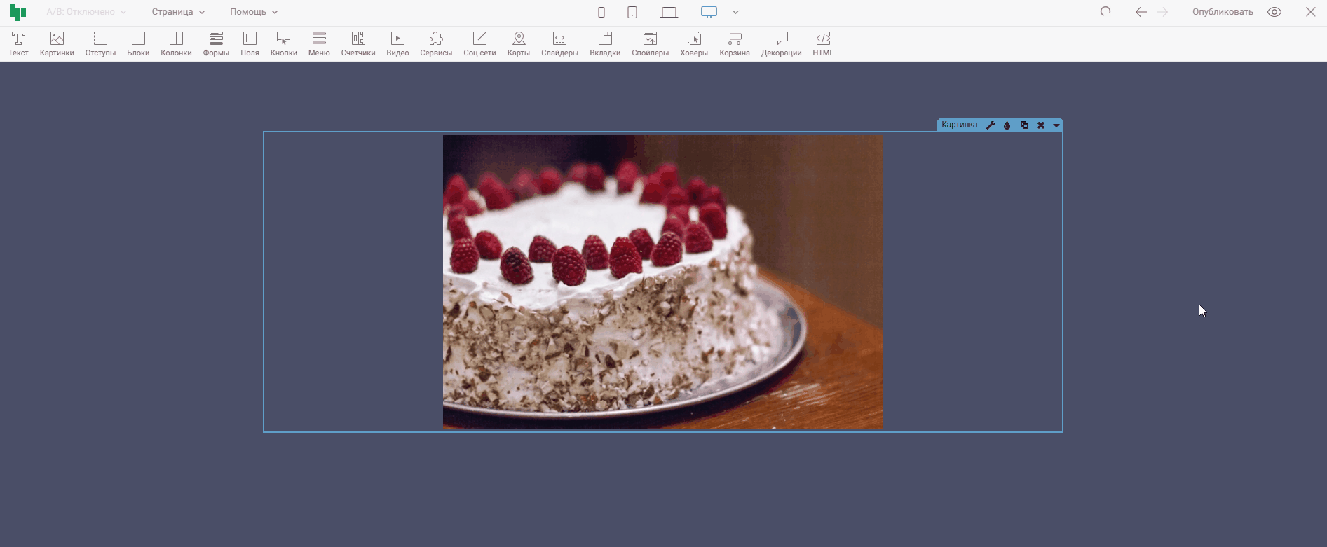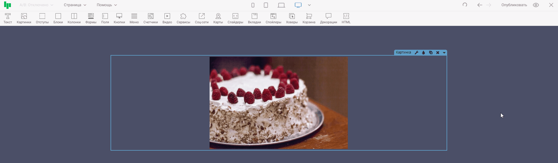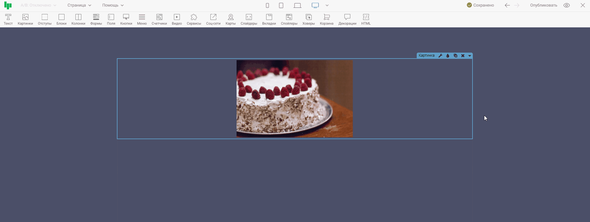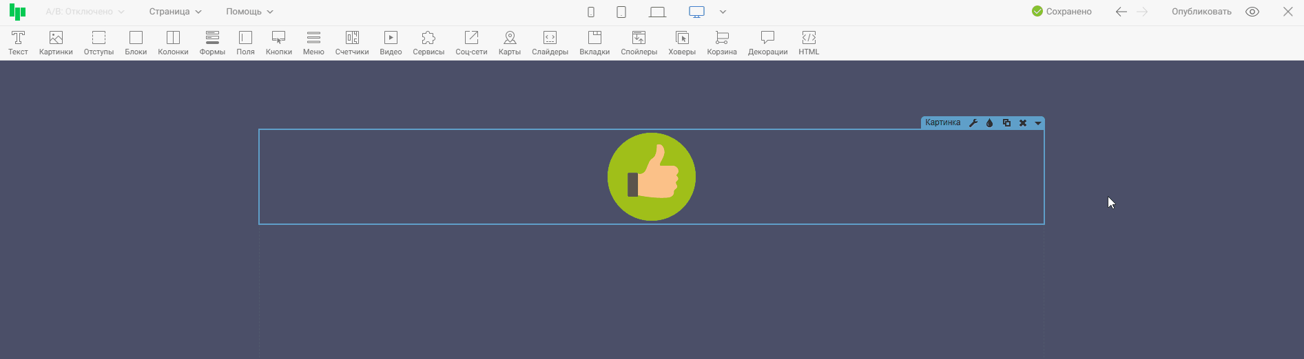 Виджет «Картинка » предназначен для размещения на странице изображения или gif анимации. Помимо виджета картинки, есть схожие по типу виджеты: