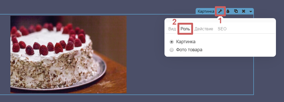 ❗Важно Если вы хотите установить фото товара, то необходимо выбрать данную роль и разместить фото внутри карточки товара.