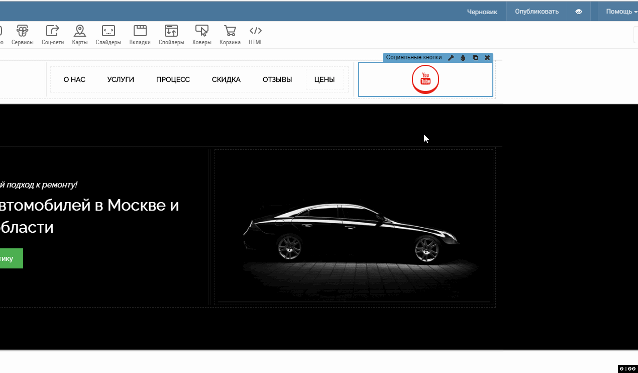 Шаг 1. Установим виджет «Кнопки-ссылки на социальные сети» на страницу.