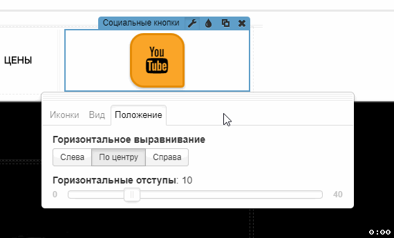 2.Настройки виджета «Кнопки на социальные сети»: