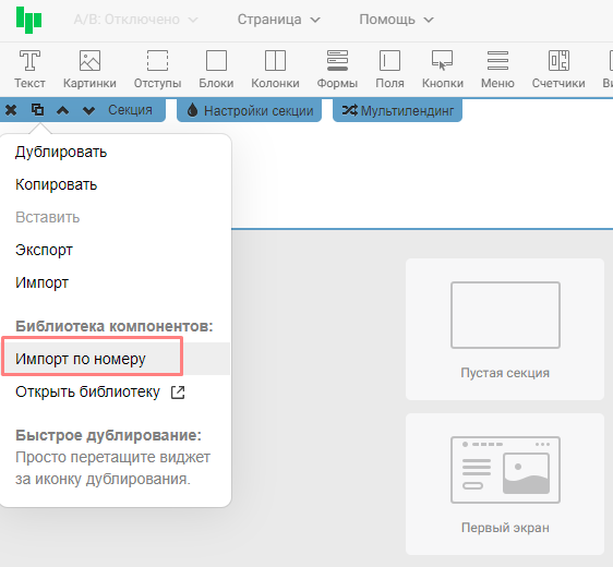 Переходим в меню копирования и выбираем «Импорт по номеру»