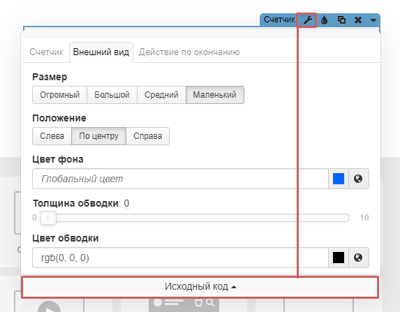 Из настроек некоторых виджетов можно перейти в исходный код.