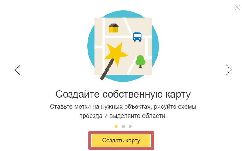 - При заходе на страницу конструктора карты, появится окно, где нужно нажать на кнопку «Создать карту»