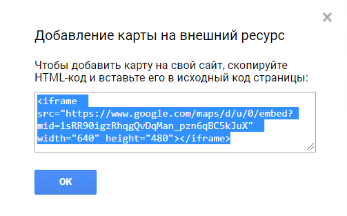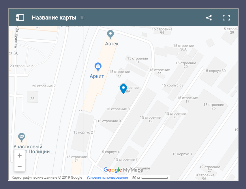 На самой странице такой вариант Google карты отображается так: