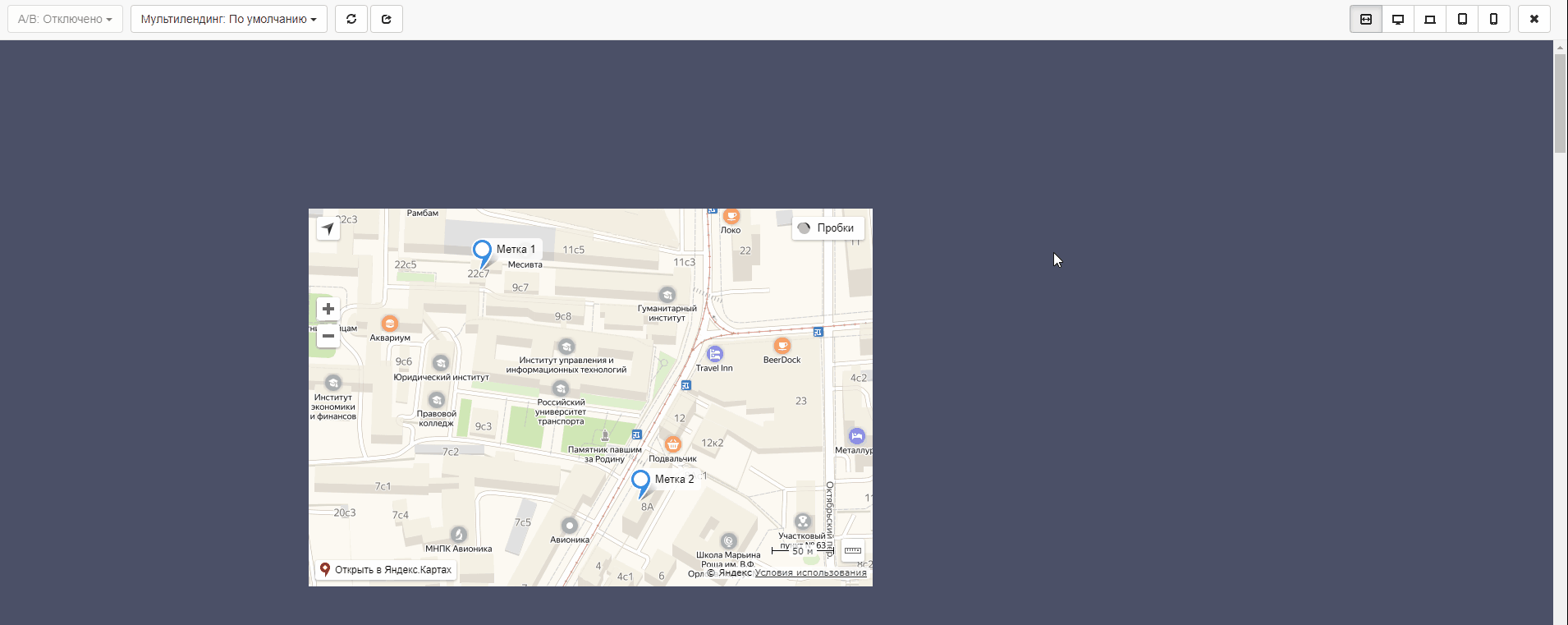 Готово! Мы добавили Яндекс карту на страницу.