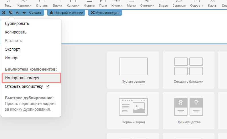 Далее - размещаем любую секцию (например, «Пустая секция») в желаемом месте на странице.