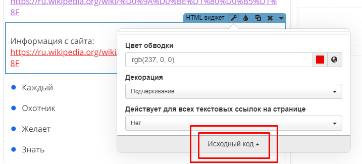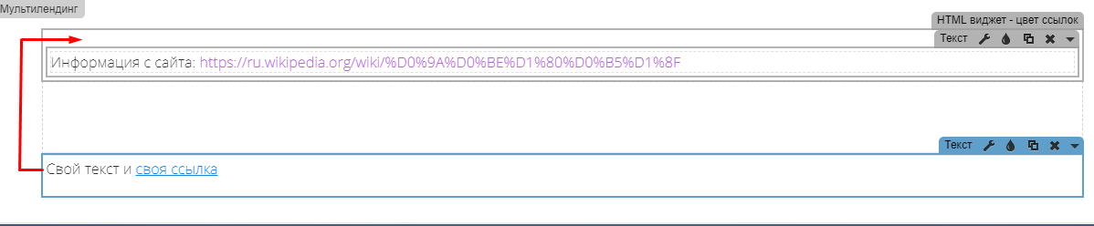 После этого появится HTML-виджет c примером ссылки в тексте: