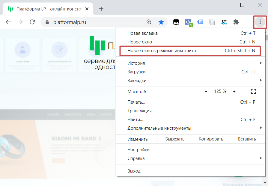 Режим «Инкогнито» позволяет посетить сайты без учета cookies и других сохраненных данных, установленных расширений.