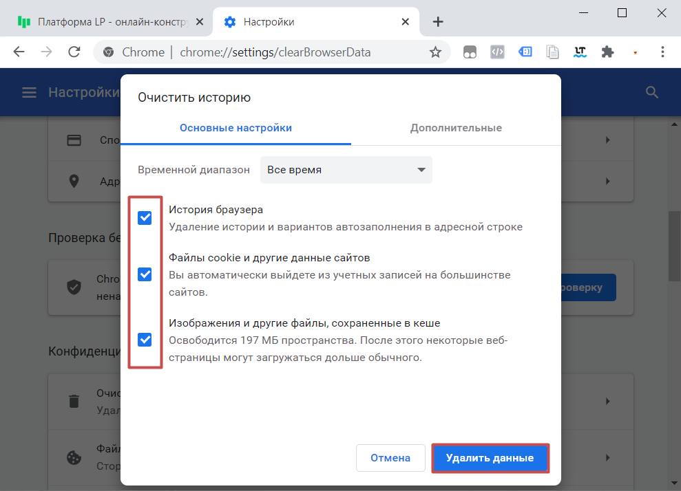 В отличие от стандартного удаления кэша браузера, при очистке данных одного сайта не затрагиваются другие. Например, в личном кабинете Платформы перестали отображаться некоторые элементы интерфейса и необходимо очистить кэш только по адресу app.platformalp.ru.