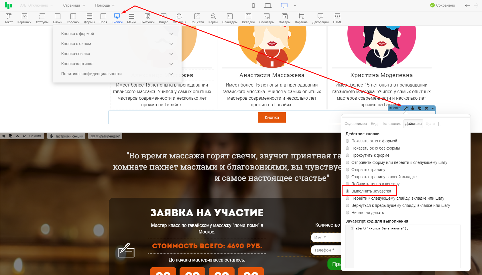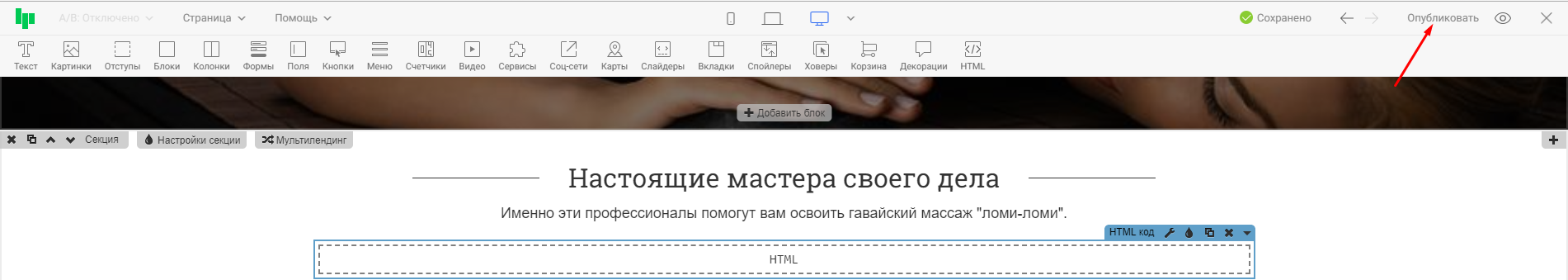 После добавления кода, необходимо опубликовать страницу повторно и проверить результат выполнения на опубликованном варианте.
