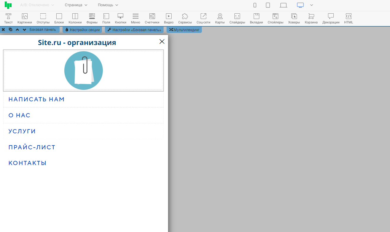 ❕ При открытии панели в ссылке на страницу добавляется окончание #navpanel.