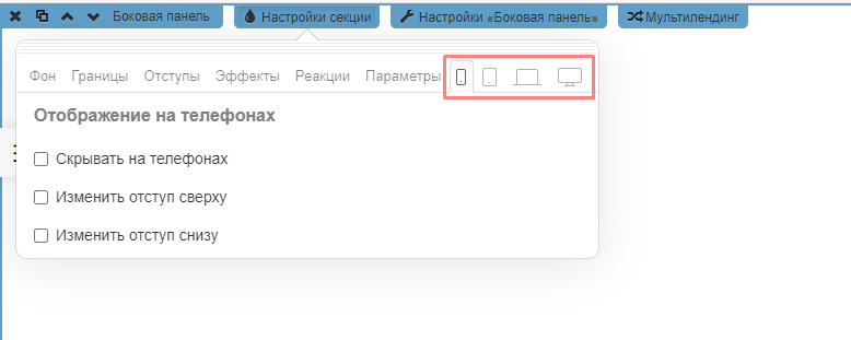 Как и любая секция, панель при необходимости скрывается для ненужных устройств.