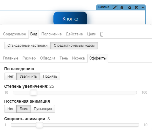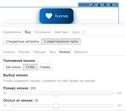 В отличие от стандартной кнопки, здесь иконка включается на вкладке "Иконка ":