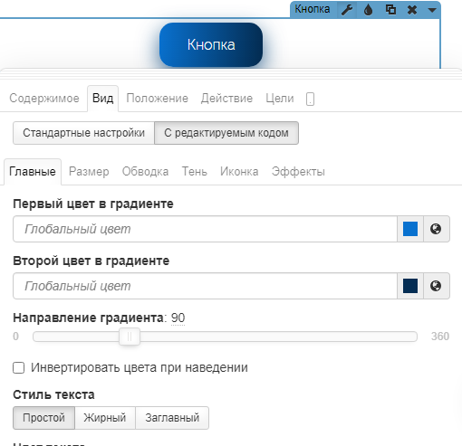 Наш виджет превратился в кнопку с настройками градиента и блика.