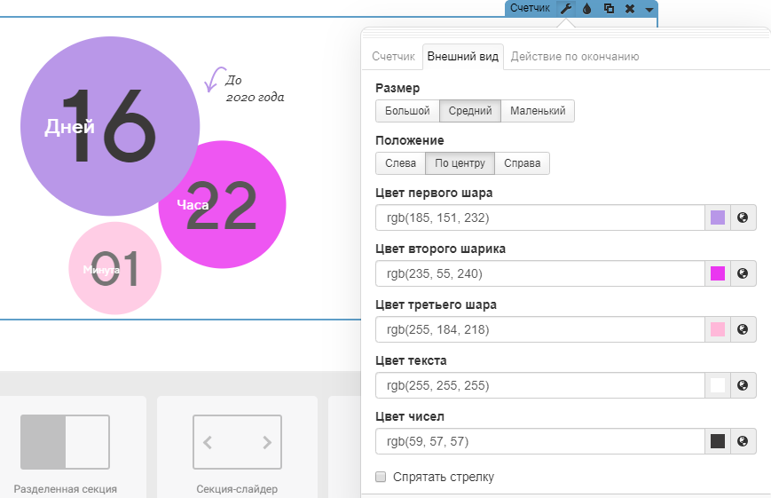 Обратите внимание, что можно настроить действие после окончания счётчика: Kак настроить действие по окончанию счетчика?