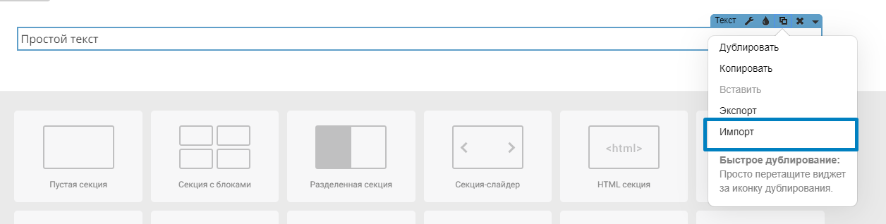 Код по ссылке необходимо выделить полностью и установить через меню «Дублирования» → «Импорт» в любой виджет на странице 🎠