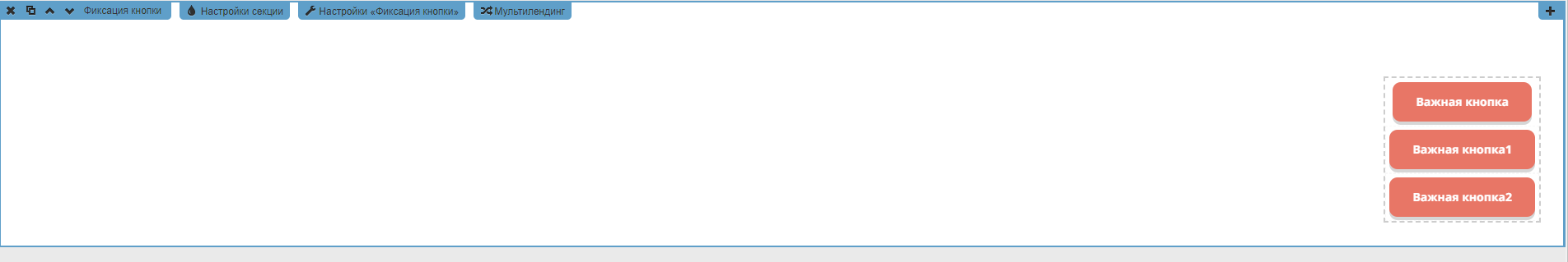 ✅ В одном виджете допускается добавление нескольких кнопок. К примеру, как боковое меню для переходов по секциям страницы. Для этого достаточно перенести дополнительную кнопку с верхней панели редактора или скопировать имеющуюся: