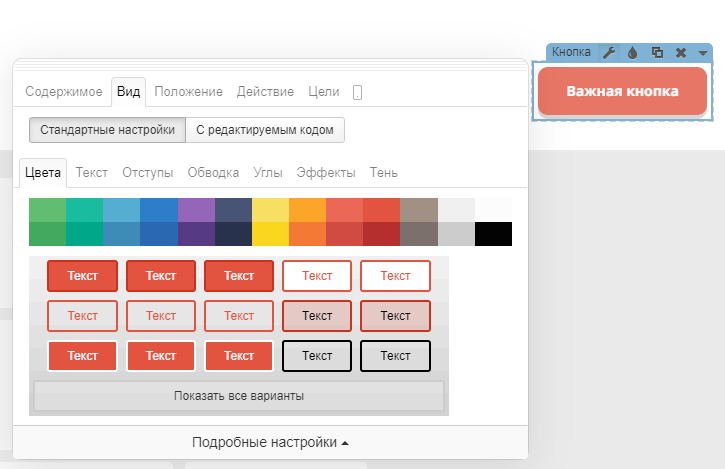 Настраиваем желаемый внешний вид кнопки как обычно: