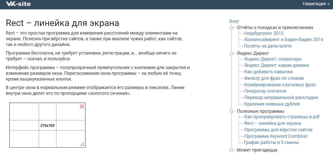 Если возникла необходимость произвести точные замеры, например, слайда на опубликованной, чтобы подогнать все картинки по размеру, то линейка именно то, что вам нужно. Rect проста в использовании — просто растяните ее по размеру нужного виджета и вы сразу получите значение высоты и ширины в пикселях.