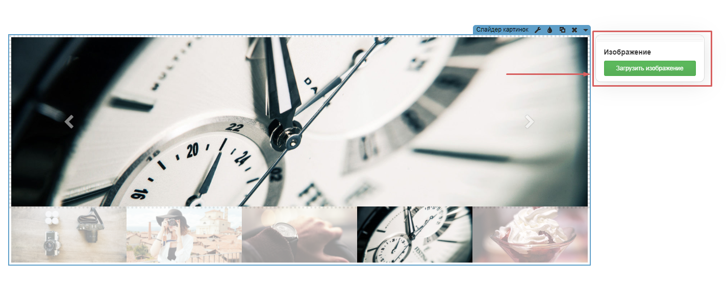 Чтобы загрузить свою картинку в слайдер, нужно кликнуть на изображение.