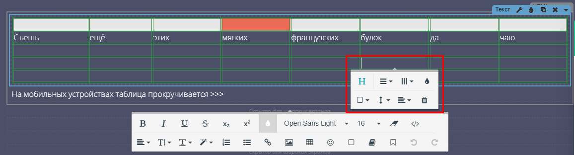Для добавления новых столбцов или строк, а также для других изменений таблицы, кликните на любую ячейку. Появится окно для редактирования:
