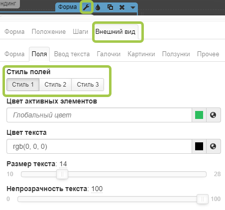 ✅ Цвет, прозрачность элементов формы (поля, текст в них, заголовки полей)