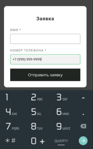 ◾ При вводе в поле номера телефона появится клавиатура цифр вместо общей клавиатуры: