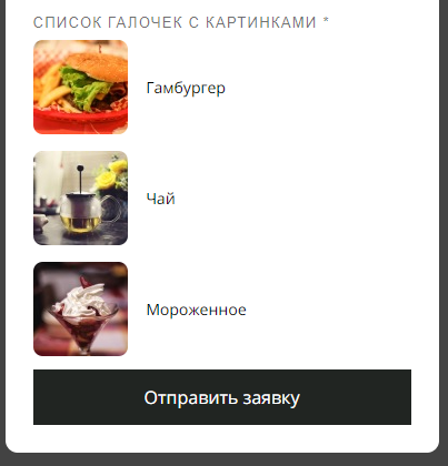 ◾ Если отображение надписей у полей с картинками отключено, то картинки будут на одной строке. Иначе - по одному элементу на строку.