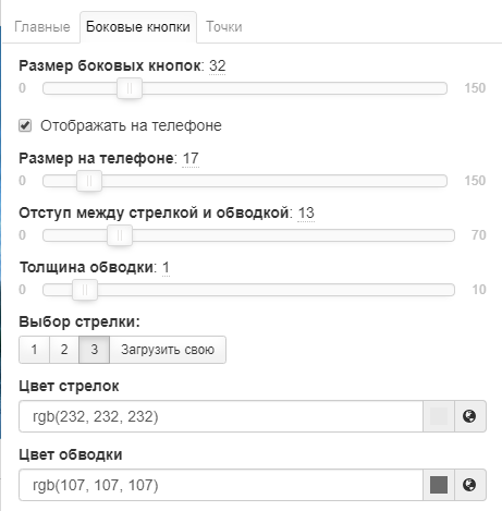 На вкладке "Боковые кнопки" настраивается внешний вид стрелок и их обводки.