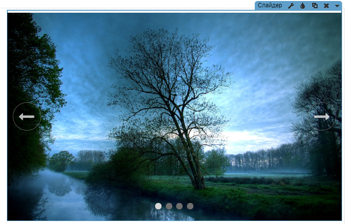 Виджет позволяет изменять боковые кнопки и нижние точки для переключения слайдов. Есть возможность их полностью убрать, изменить размер отдельно для мобильных устройств.