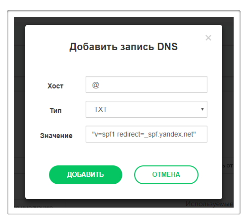 Значение: "v=spf1 redirect=_spf.yandex.net"