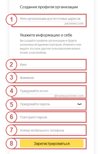 Шаг 2. Заполняем все поля при регистрации в Яндекс 360: