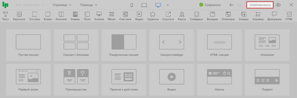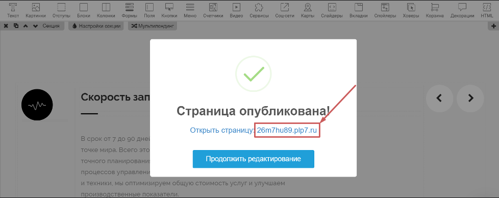 После того как вы нажмете на кнопку «Опубликовать» , все изменения в редакторе сохранятся на странице.