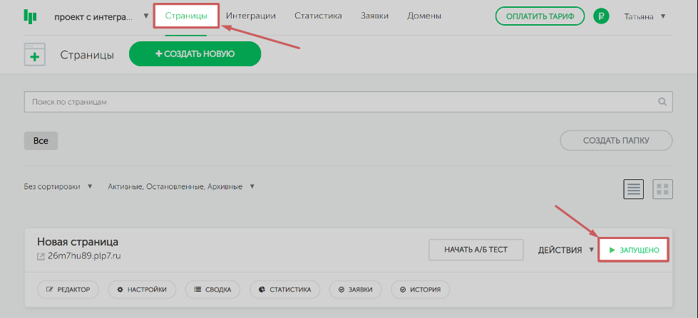 После успешной публикации в личном кабинете напротив страницы появится значок «Запущено».