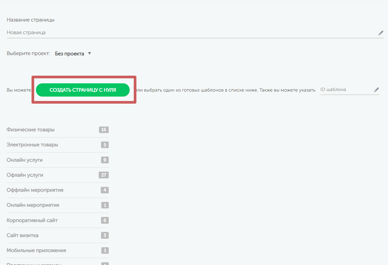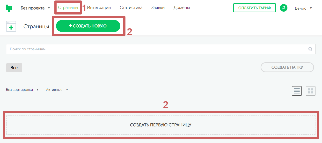 Нажмите на зеленую кнопку «Создать новую» или на**«Создать страницу»** ниже. Они выполняют одинаковую функцию.