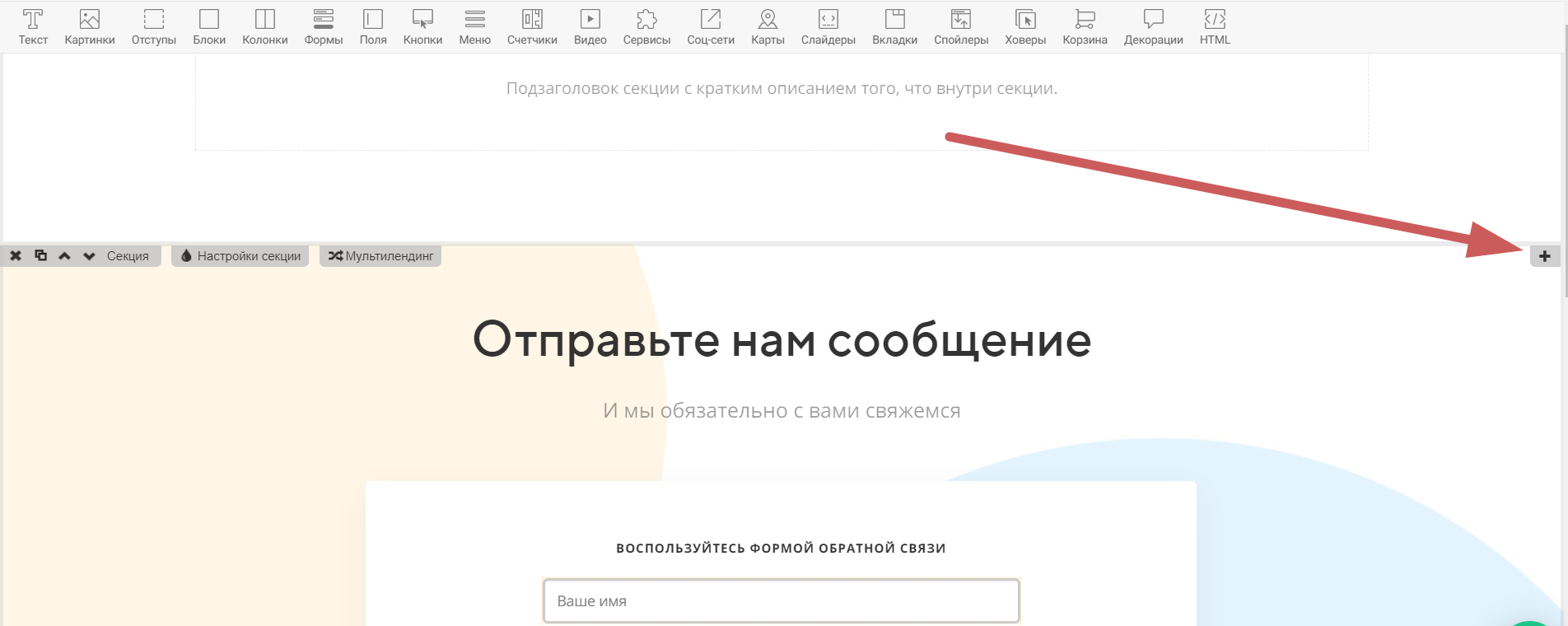Если хотите добавить новую секцию между двумя имеющимися - нажмите на иконку ✚**** между секциями